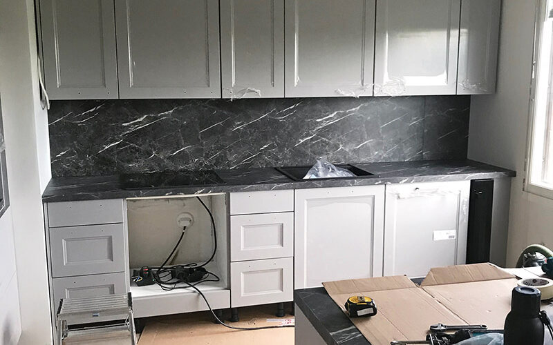 Remontti osui kesälle pandemian aikaan, ja muuttamaan piti päästä elokuun puolessa välissä. Kokonaisremontissa meillä oli toinen urakoitsija ja keittiön asennuksessa OmaTimpuri. Sen muun remontin vuoksi jouduttiin heti alkuun lykkäämään sitä keittiön asennusta parilla viikolla, mutta saatiin Esan kanssa sovittua se hyvin. Esa oli todella joustava heti alkuun.